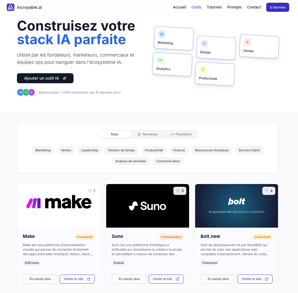 👉 Vous pouvez y parcourir les meilleurs outils du moment, filtrés par cas d’usage (marketing, productivité, design, etc.), voir les plus populaires, et bien sûr…