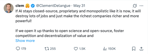 Les grands groupes tech gardent l'IA sous clé, et ça pose un vrai problème. C'est ce que nous dit Clément Delangue dans un message percutant sur les réseaux sociaux. Il nous alerte sur les risques d'une IA qui reste entre les mains de quelques entreprises.