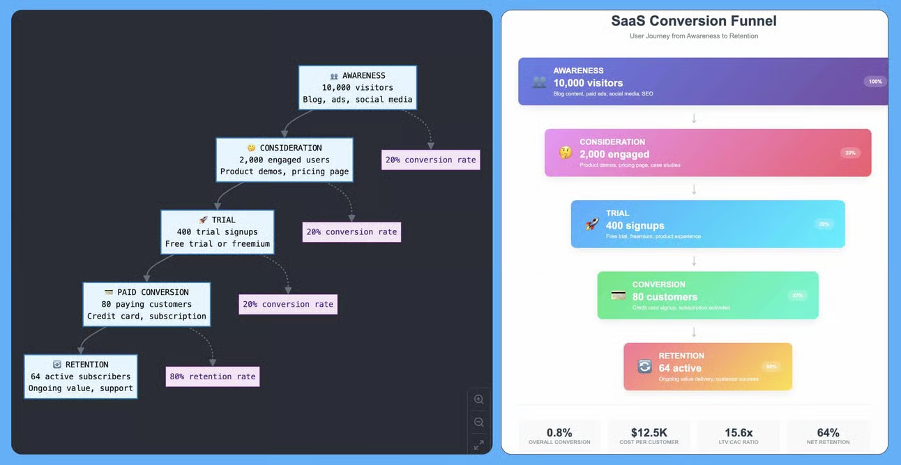 👉 En quelques secondes, Claude vous livre un visuel clair, réutilisable dans une présentation ou exportable en code.